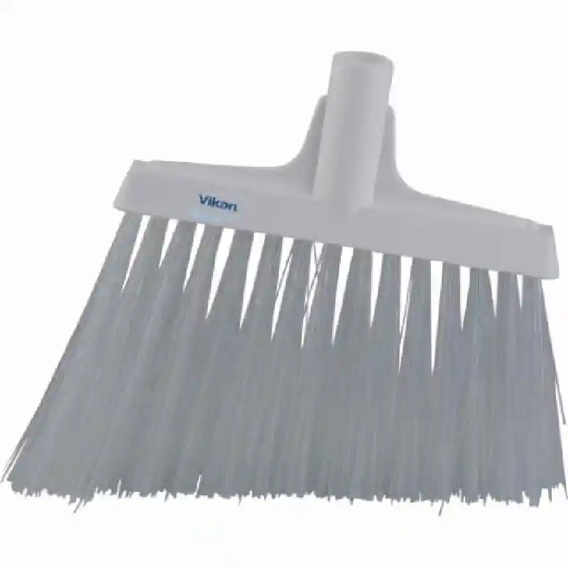 These eleven inch angle cut brooms are designed for environments where hygiene and efficiency are essential. They are color-coded and manufactured for durability with solid polypropylene blocks and polyester or PET bristles set with stainless steel staples.
