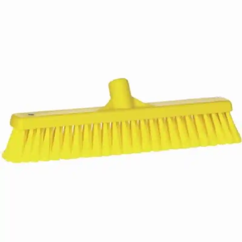 This 16 inch fully color-coded sweeping broom has two types of bristles to pick up every particle. The stiff bristles loosen stubborn dirt, and the soft bristles sweep away loose particles.