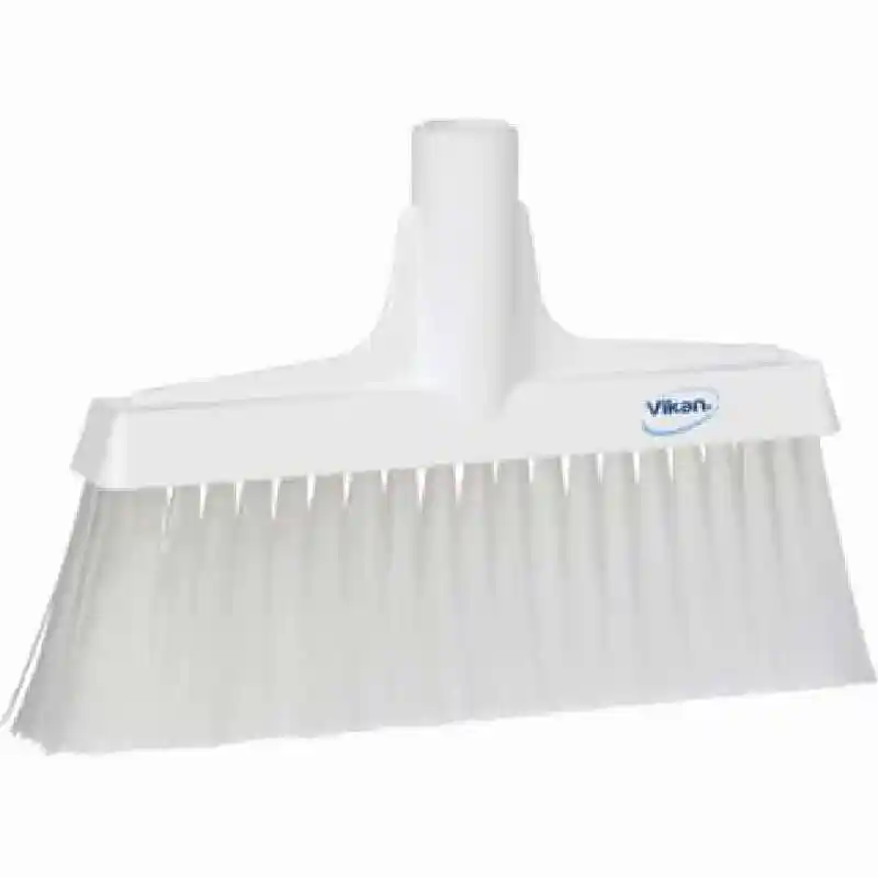 These 10.35 inch lobby brooms are designed for environments where hygiene and efficiency are essential. They are color-coded and manufactured for durability with solid polypropylene blocks and polyester or PET bristles set with stainless steel staples.