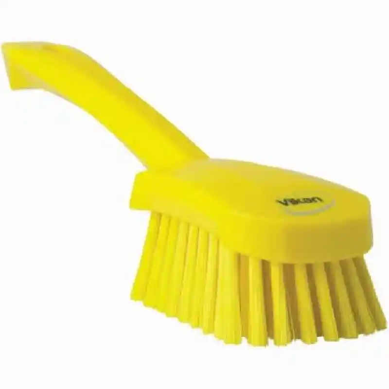 This fully color-coded, short-handled, wash brush has a comfortable grip allowing you to work for long periods of time without hand fatigue. The medium strength bristles are great for washing all types of equipment, tables and walls. You can use the brush holding both the handle and the brush head to give you better control.