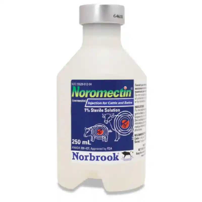 Ivermectin 1% Injectable (Generic) treats and controls the internal and external parasites in cattle and swine. This clear ready-to-use solution is effective against gastrointestinal roundworms, lungworms, grubs, lice and mange mites. It is formulated to deliver the recommended dose level of 200 mcg Ivermectin/kilogram of body weight in cattle when given subcutaneously at the rate of 1 ml/110 lb (50 kg). In swine, Ivermectin 1% Injectable (Generic) is formulated to deliver the recommended dose level of 300 mcg Ivermectin/kilogram body weight when given subcutaneously in the neck at the rate of 1 ml/75 lb (33 kg). Label may be different than shown.