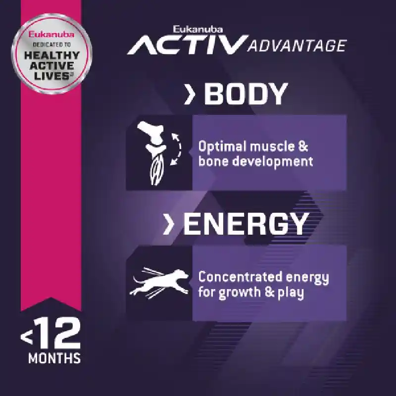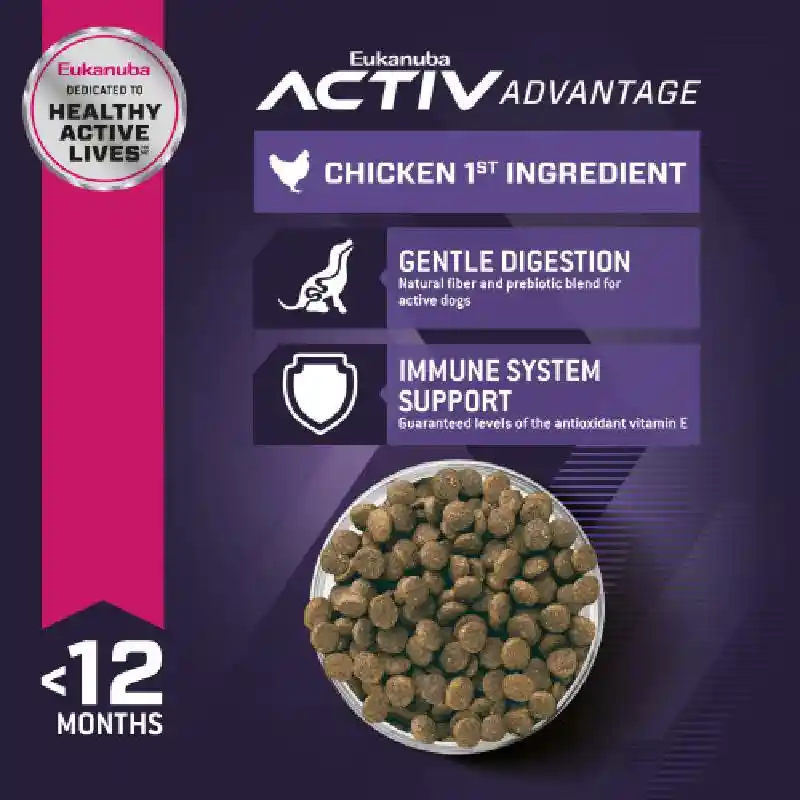 High-quality animal proteins and optimal levels of calcium and phosphorus help maintain muscle growth and bone health. Clinically proven DHA levels promote healthy brain development for a smarter, more trainable pup. Optimized fat and carbohydrate levels give your puppy concentrated energy for growth and play. A natural fiber and prebiotic blend aids gentle digestion. And guaranteed levels of the antioxidant vitamin E help support your little champion’s developing immune system. And high-quality chicken is the first ingredient to power your little dog’s day.