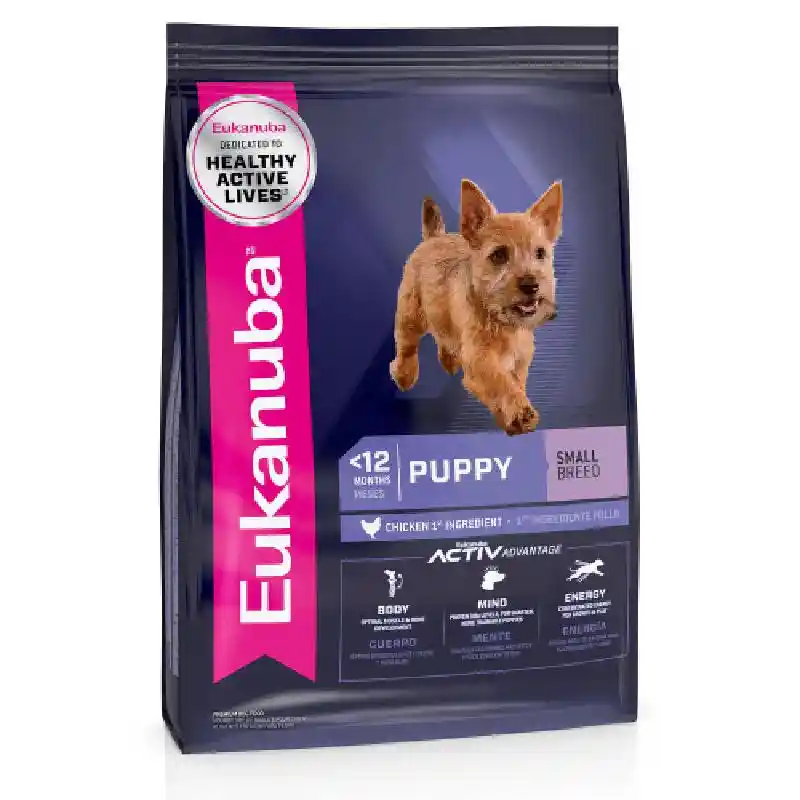 Eukanuba Puppy Small Breed dry dog food is complete and balanced nutrition for small breed puppies up to 12 months old with an expected adult weight under 23 lbs.