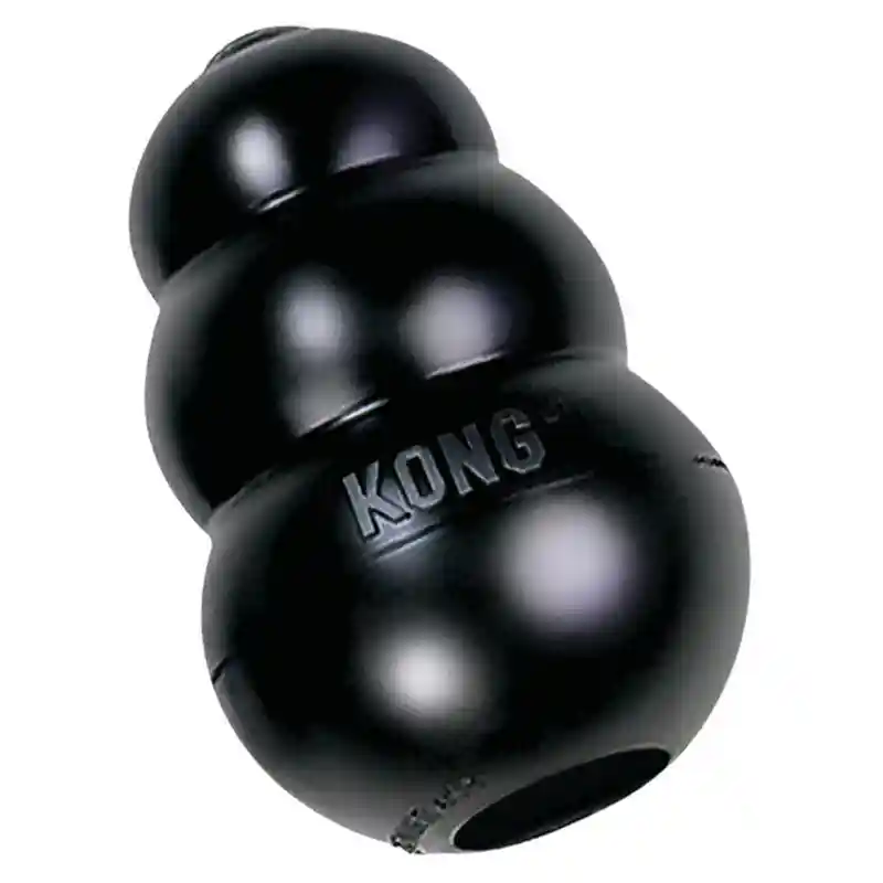 The KONG Extreme dog toy represents the most durable strength of KONG rubber. Designed for the toughest of chewers, the KONG Extreme offers enrichment and helps satisfy dogs’ instinctual needs. The KONG unique, ultra-durable, natural rubber formula is designed for determined chewers, while the erratic bounce fulfills a dog’s need to play. Want to extend play time? Be sure to stuff with tempting bits of kibble and entice with a dash of peanut butter. Add to the fun by adding KONG Snacks and top with KONG Easy Treat. Stuff and Freeze for a longer-lasting challenge.