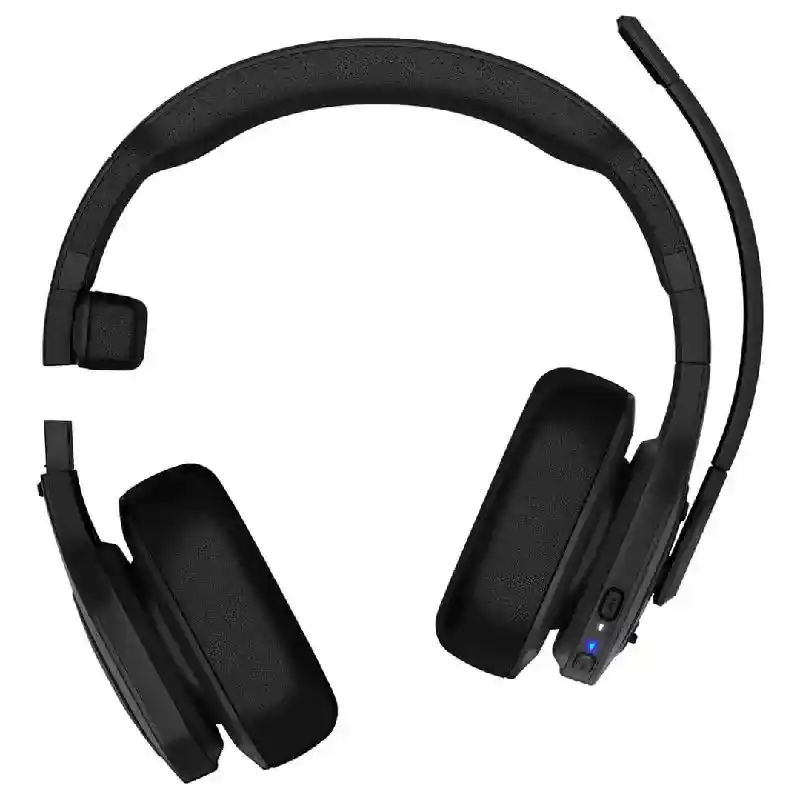 The wireless, ergonomic design is purpose-built for the long haul with durable, corrosion-resistant stainless steel construction. Plush memory foam-padded ear cushion with synthetic leather provides all-day comfort.