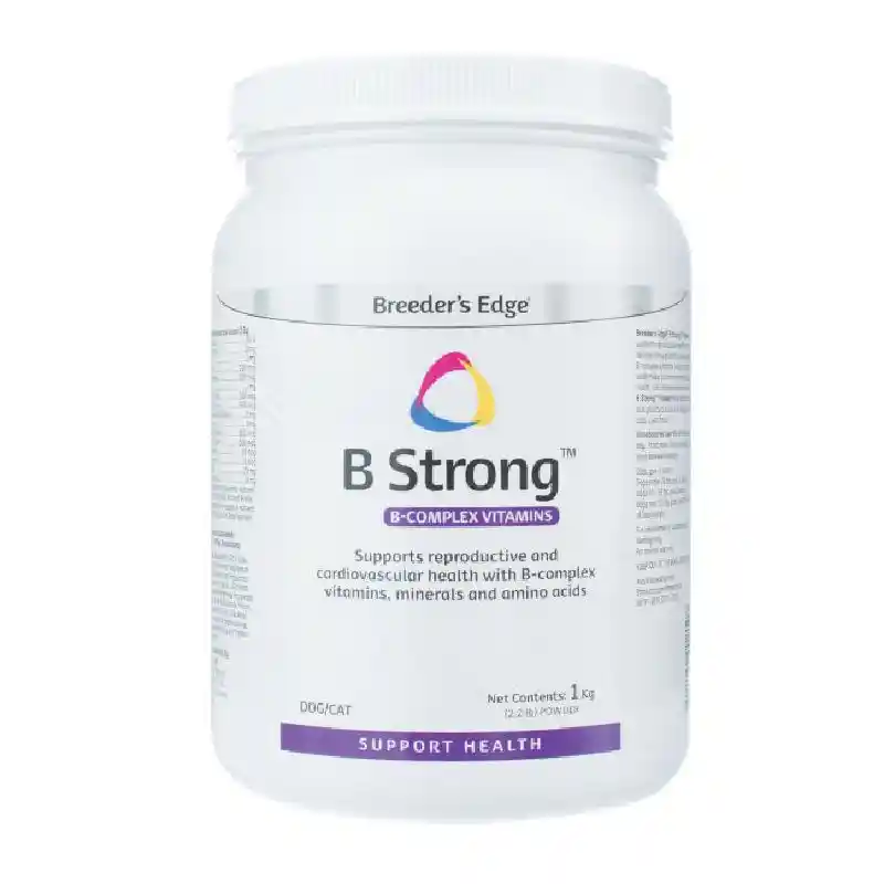 Breeder's Edge® B Strong™ Liquid and Powder are a B complex vitamin for dogs and cats that supports reproductive health. B Strong™ promotes healthy heat cycles for females by providing the nutrients she needs for healthy and regular heat cycles.