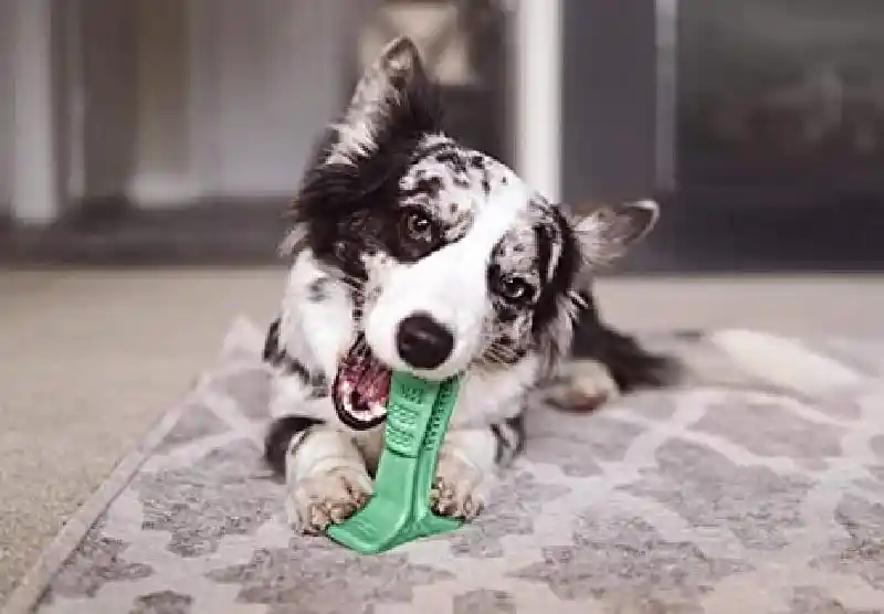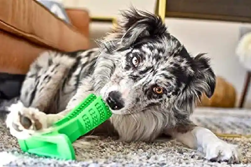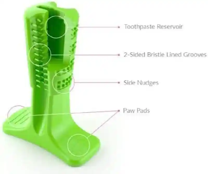 Bristle-lined grooves that brush dog's teeth down to the gum line