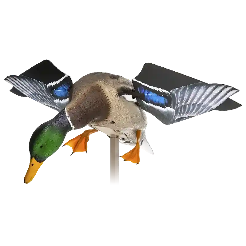 The PowerFlight Mallard features weather-resistant housing for unstoppable performance in the harshest conditions - even 30 mph winds. Its lithium-ion battery runs for up to 16 hours of continuous use vs the 6-8 hour battery-life with the typical 6 volt, lead-acid battery. Recharging is easy using the external charging port. Also, hunters can use an optional 6-volt lead-acid battery in between charges. The PowerFlight Mallard includes everything the duck hunter needs to add life-like realism and duck-drawing power of motion -including the decoy, remote, rechargeable battery, charger, and a heavy-duty, marsh stake. Combining the PowerFlight Mallard with Avian-X's TopFlight or Full Body duck decoys creates the ultimate duck decoy spread. Avian-X builds innovative and high-quality gear with a lofty goal -to make every decoy look just as real as the birds flying overhead. The PowerFlight Mallard spinning-wing decoy puts more ducks on the X.