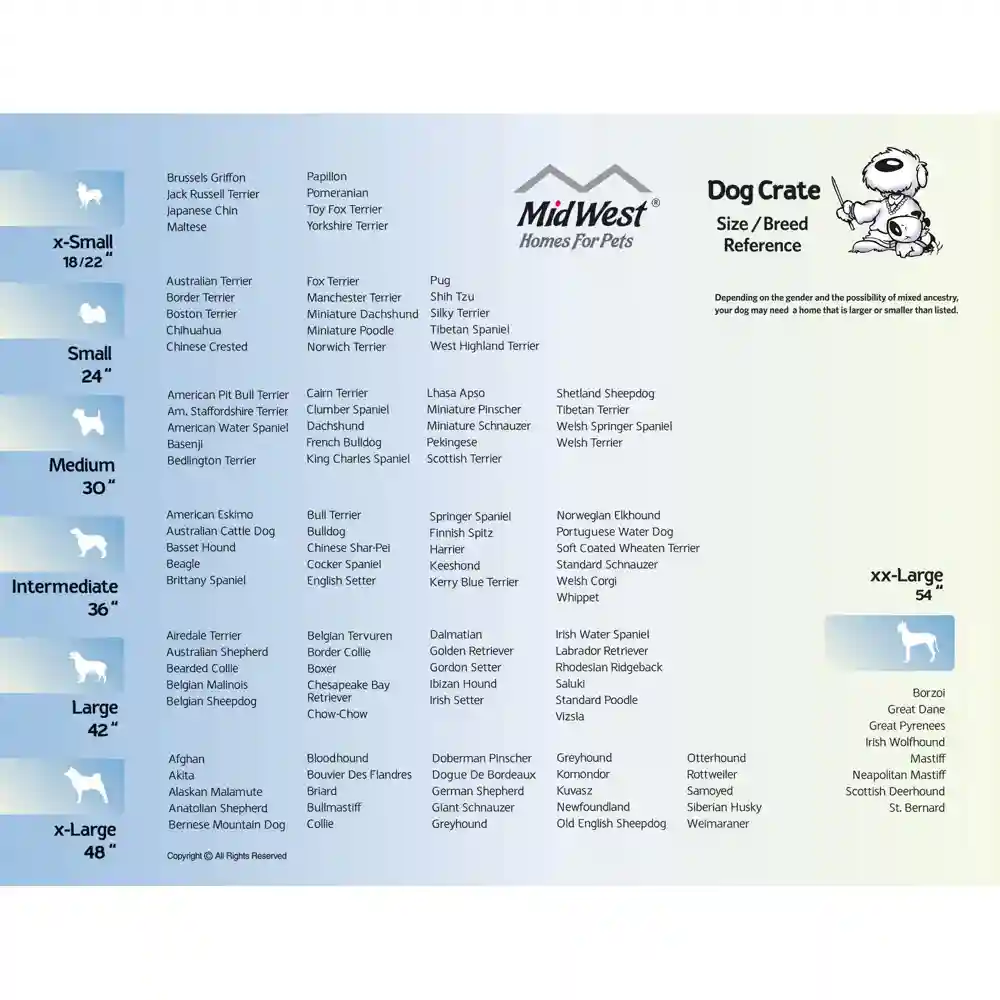 Contour® Crates wire dog crates provide a personal, den-like space for dogs and are useful for housebreaking, puppy training, and travel. The safety and security of the slide-bolt latch combines with the exclusive LapLock Technology, which creates multiple lock points around the door. The easy-to-install divider panel can be used to adjust the living space for a puppy. Contour® Crates come in single- and double-door options with seven sizes for toy breeds to extra-large breeds.
