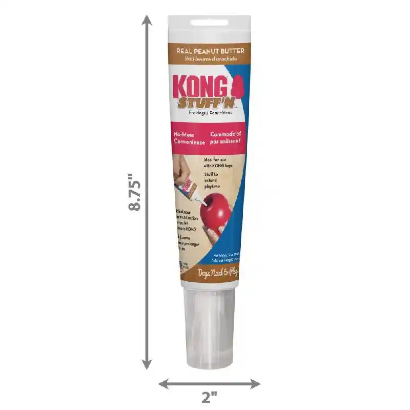 KONG STUFF’N Real Peanut Butter is made with human-grade ingredients. It is packaged in no-mess, easy-squeeze tube with extra-long nozzles, making it easier to add to your dog’s favorite KONG toys. Our convenient tubes also work great during training, allowing you to reward your dog straight from the nozzle; a little squeeze is all you need.