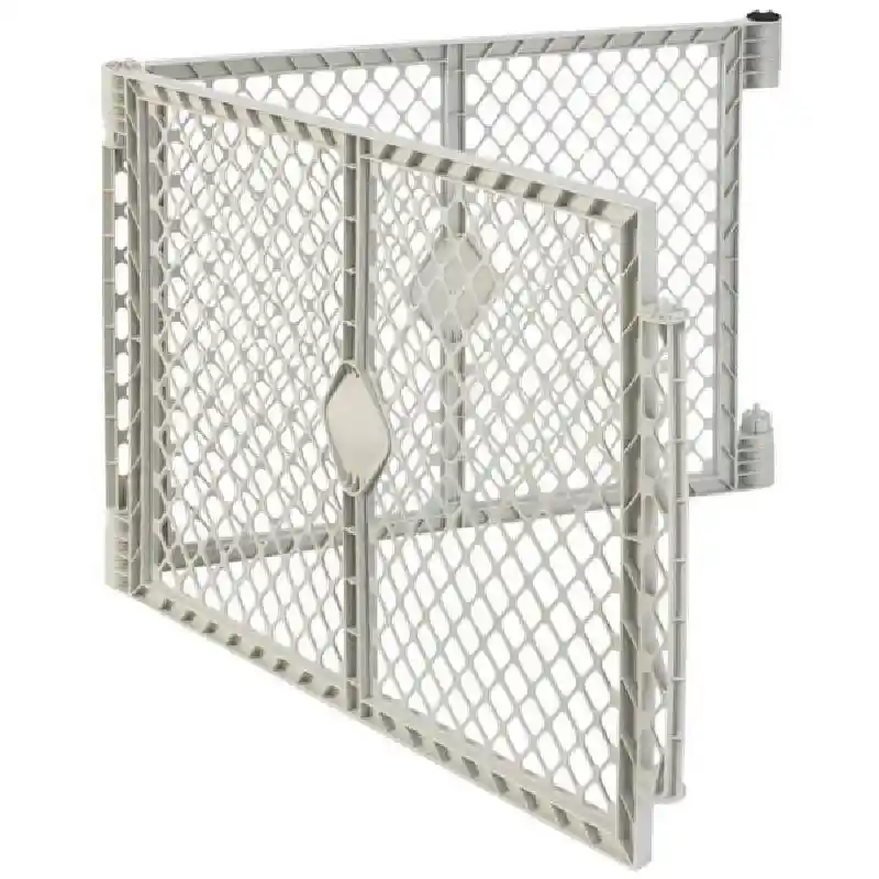 The Petyard Two-Panel Extension allows you to increase the Petyard from a 6-panel to an 8-panel play yard. Sold separately from the Petyard (model number 8668 and 8669), the additional two panels in light gray increase the size of the Petyard from 18.5 square feet to 34.4 square feet, that’s almost 7 feet across! It is 65 1/2 inches in length and 26 inches tall.